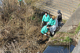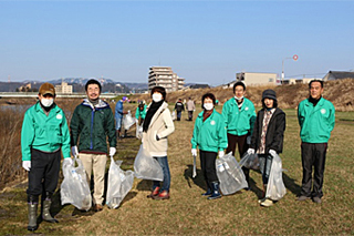 - 足羽川の水辺環境を守るため、毎年この時期に、春を迎える足羽川をきれいにする清掃活動に参加しています。