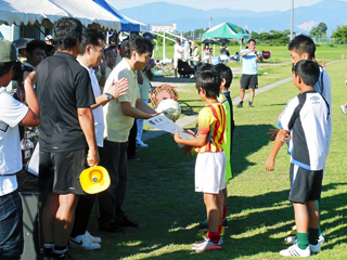 弊クラブが後援しております「第21回福井市少年サッカー大会」が下記の通り開催されました。サッカー競技を通して地域スポーツの振興と親睦を深めるとともに、少年達の健全育成とフェアプレーの精神を養うことを目的としています。閉会式での列席と、表彰式典における賞品の授与へのご参加、また競技の観戦を行いました。