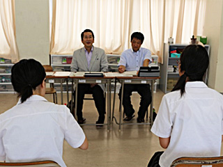 経営者による就職模擬面接を通して指導と助言を与えることにより、就職に対する生徒の意識を高め、就職試験に向けての準備と心構えを教示することが狙いであります。