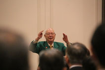 クラブの揃いのグリーンのジャケットを着用し、これから、松原六郎ガバナーエレクトを、