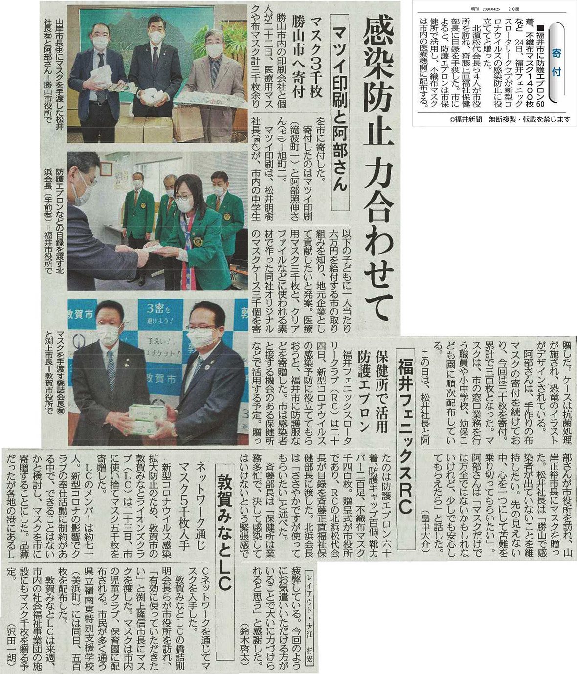 4月24日福井市保健所に医療資材を寄贈いたしました